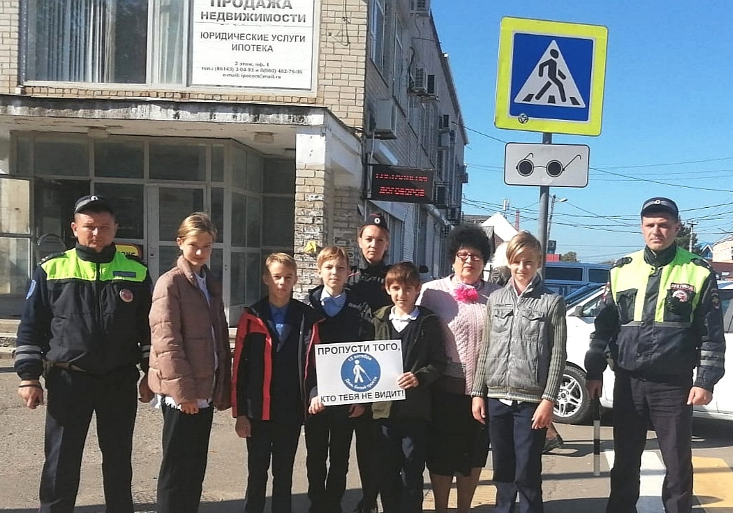 Ежегодно 15 октября отмечается Международный день белой трости. В преддверии этого дня сотрудники Госавтоинспекции Приморско-Ахтарского района, совместно с отрядом ЮИД МБОУ СОШ №2 и членом Общественного совета при Отделе МВД России по Приморско-Ахтарскому району провели акцию «Пропусти того, кто тебя не видит!».