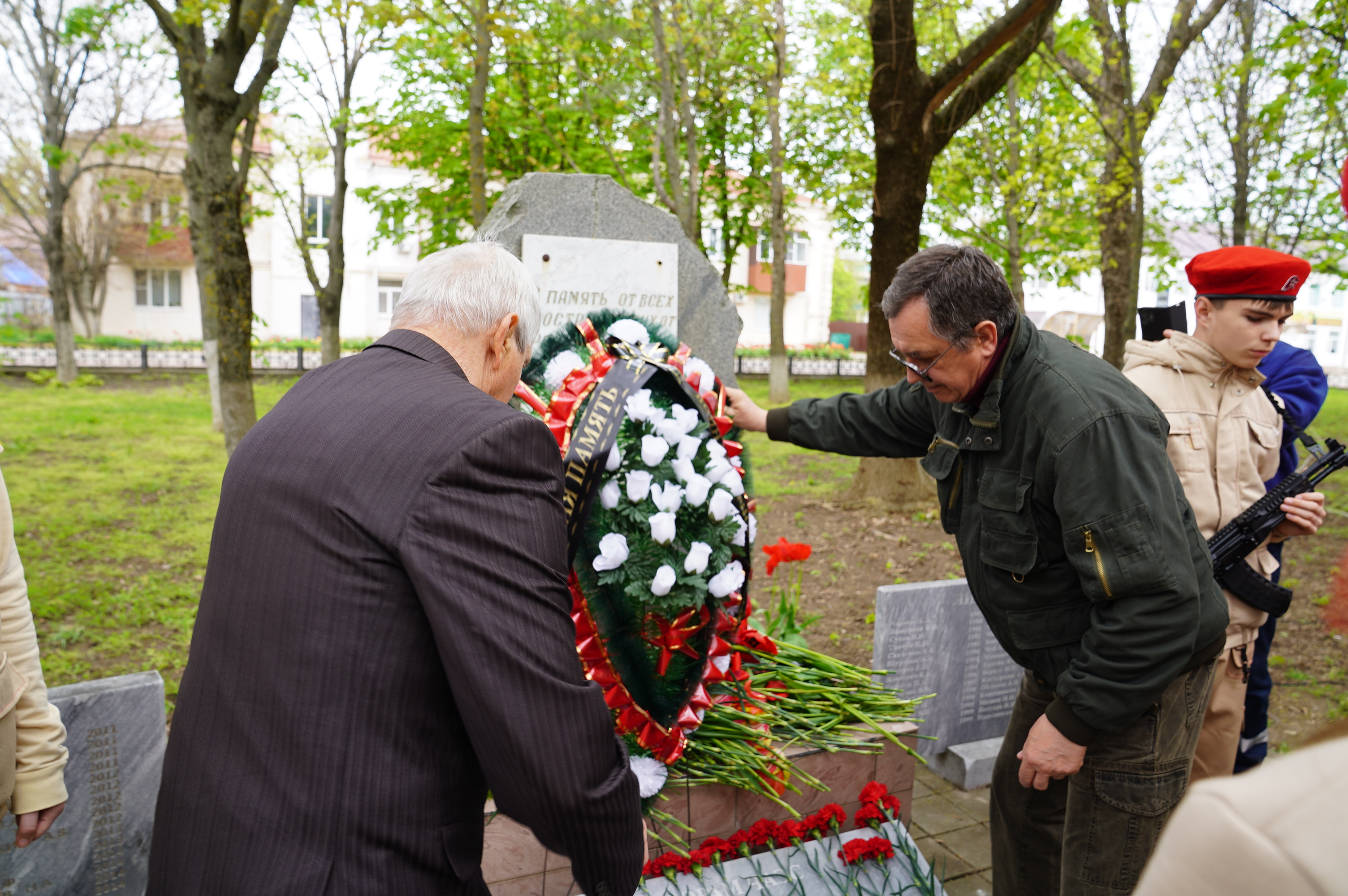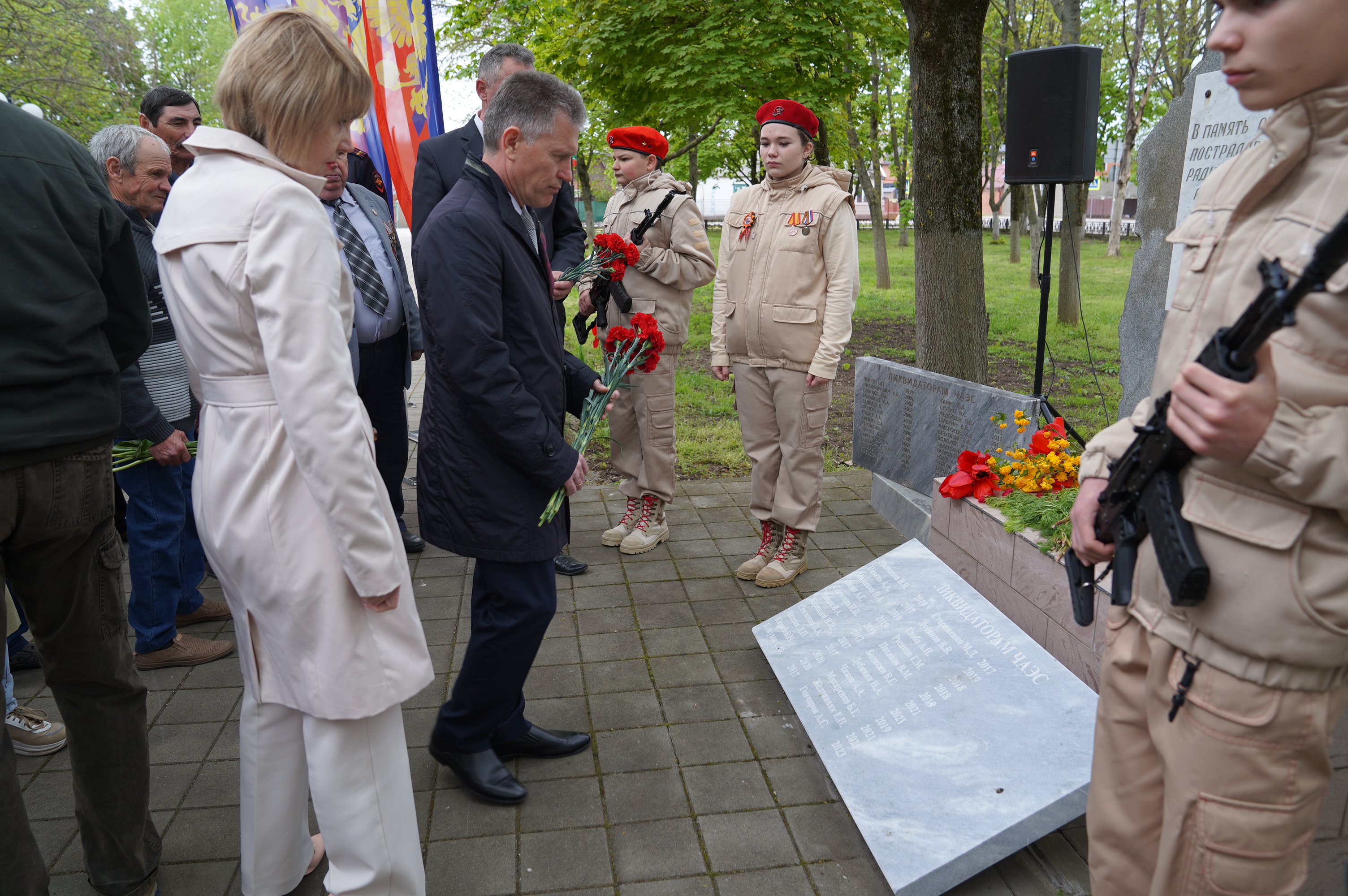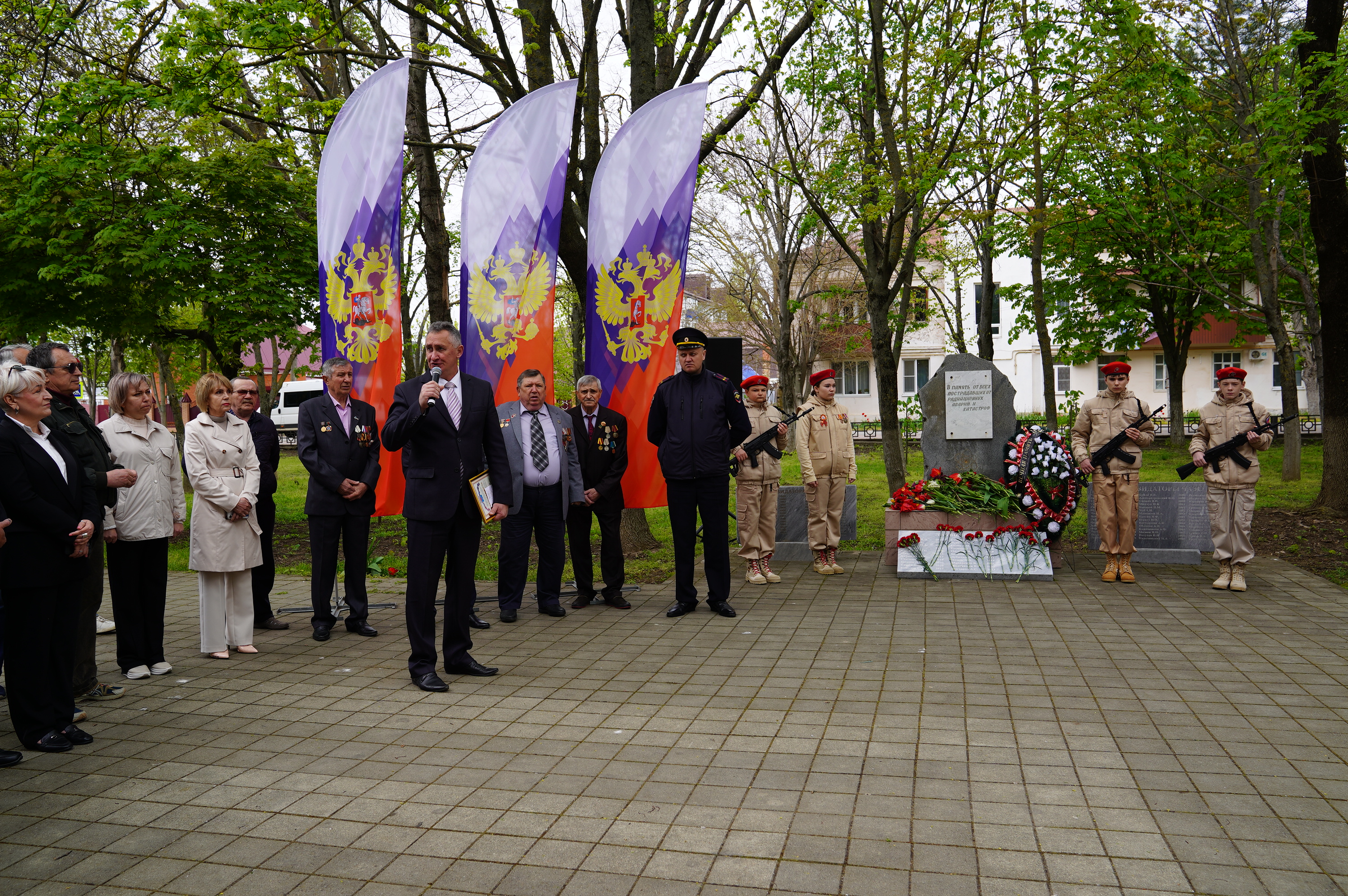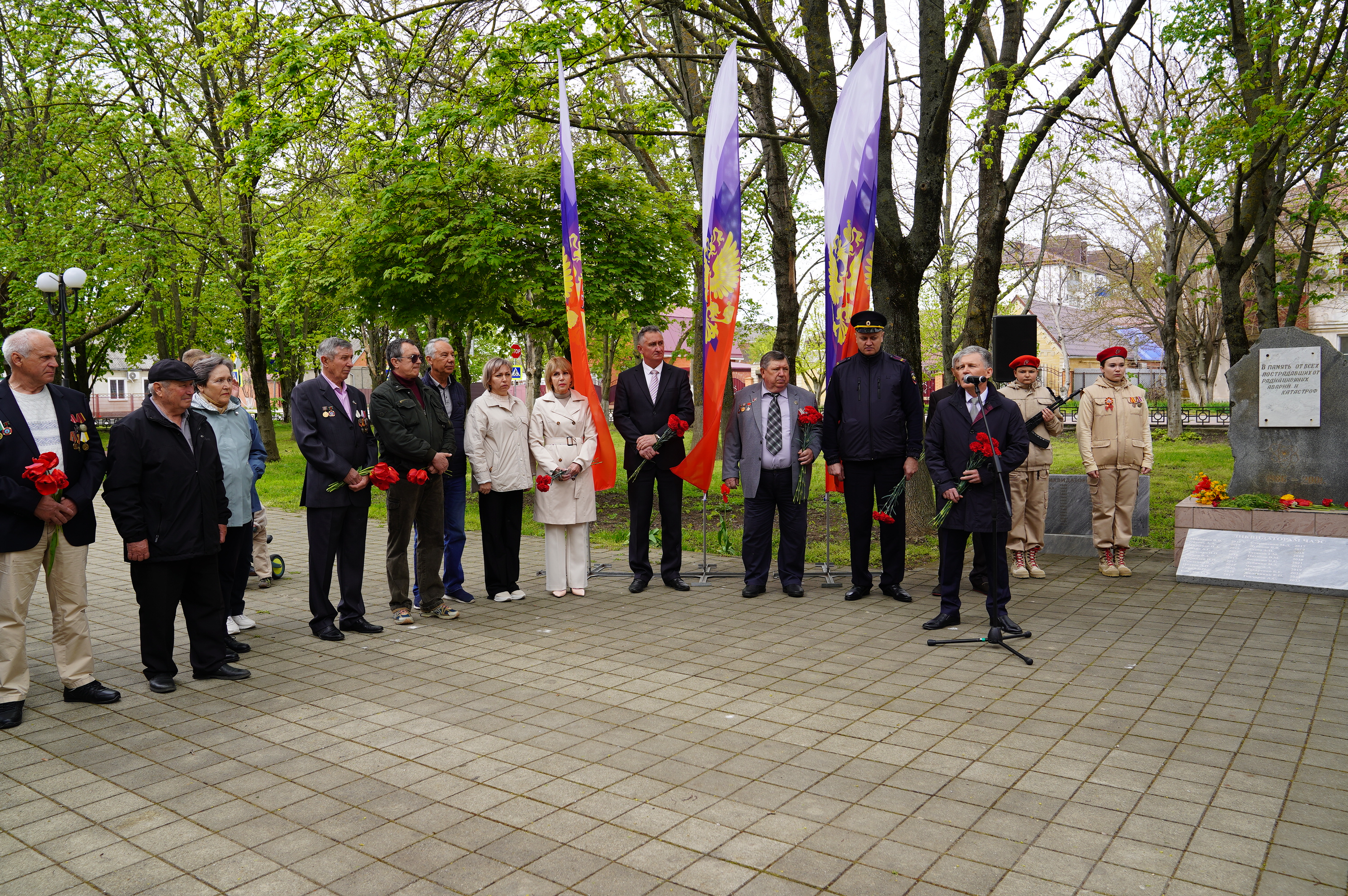 Временно исполняющий полномочия главы Приморско-Ахтарского муниципального округа Краснодарского края Евгений Валерьевич Путинцев выступил с приветственным словом. Он выразил глубокую благодарность всем, кто «принял на себя самый страшный удар», пожертвовав своим здоровьем и жизнями ради остановки распространения радиации. Отдельные слова признательности были сказаны тем, кто участвовал в строительстве "Саркофага", дезактивации территорий и эвакуации населения. Евгений Валерьевич подчеркнул, что их мужество, самоотверженность и профессионализм служат вечным примером истинного патриотизма и героизма.