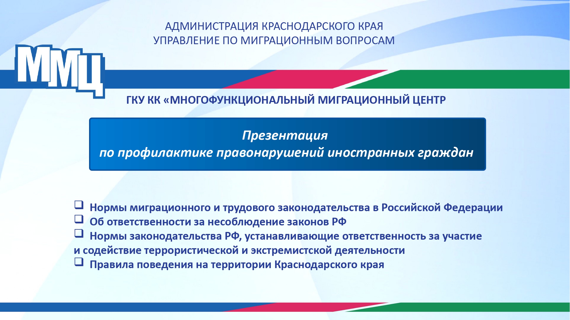 Презентационные материалы по профилактике нарушений иностранных граждан