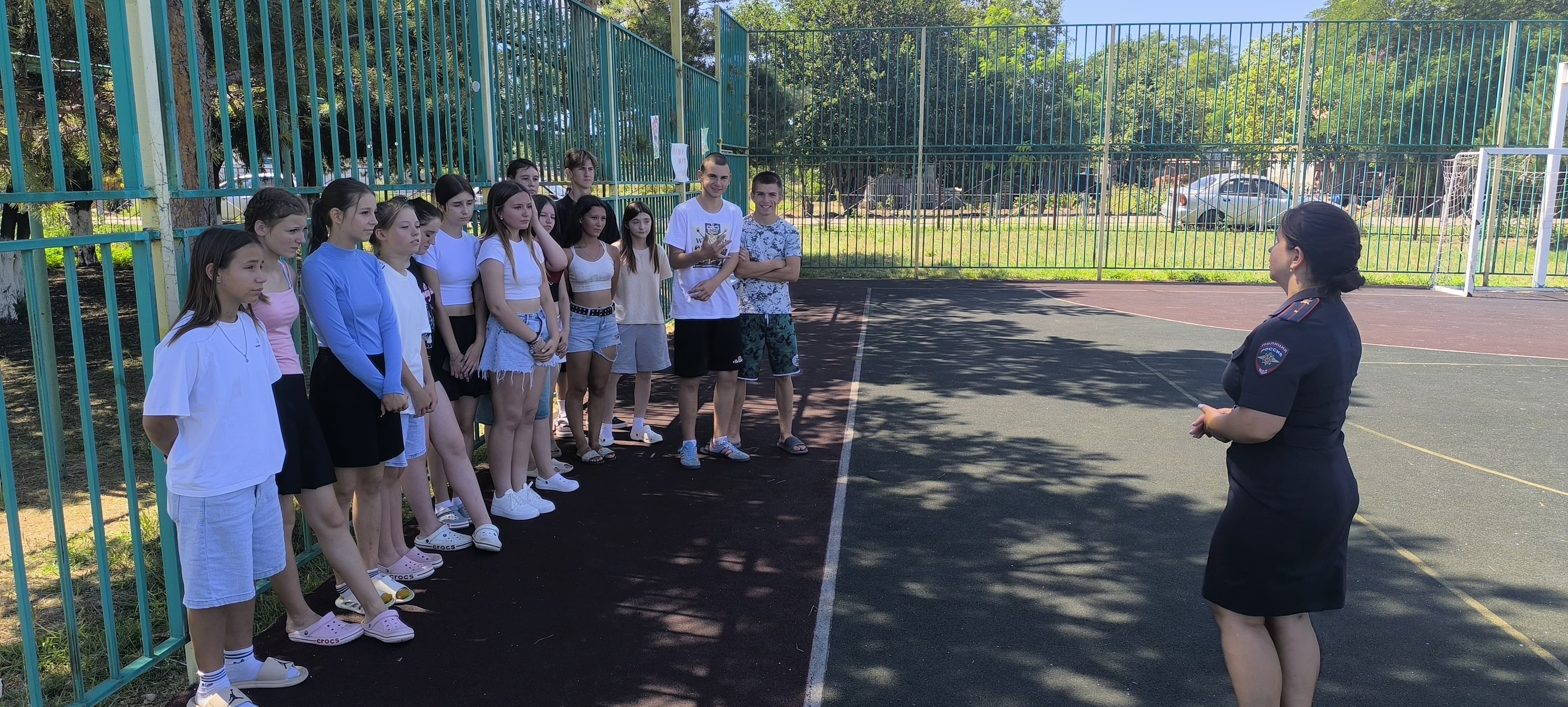 Сотрудники полиции проводят с подростками детских оздоровительных лагерей спортивные мероприятия
