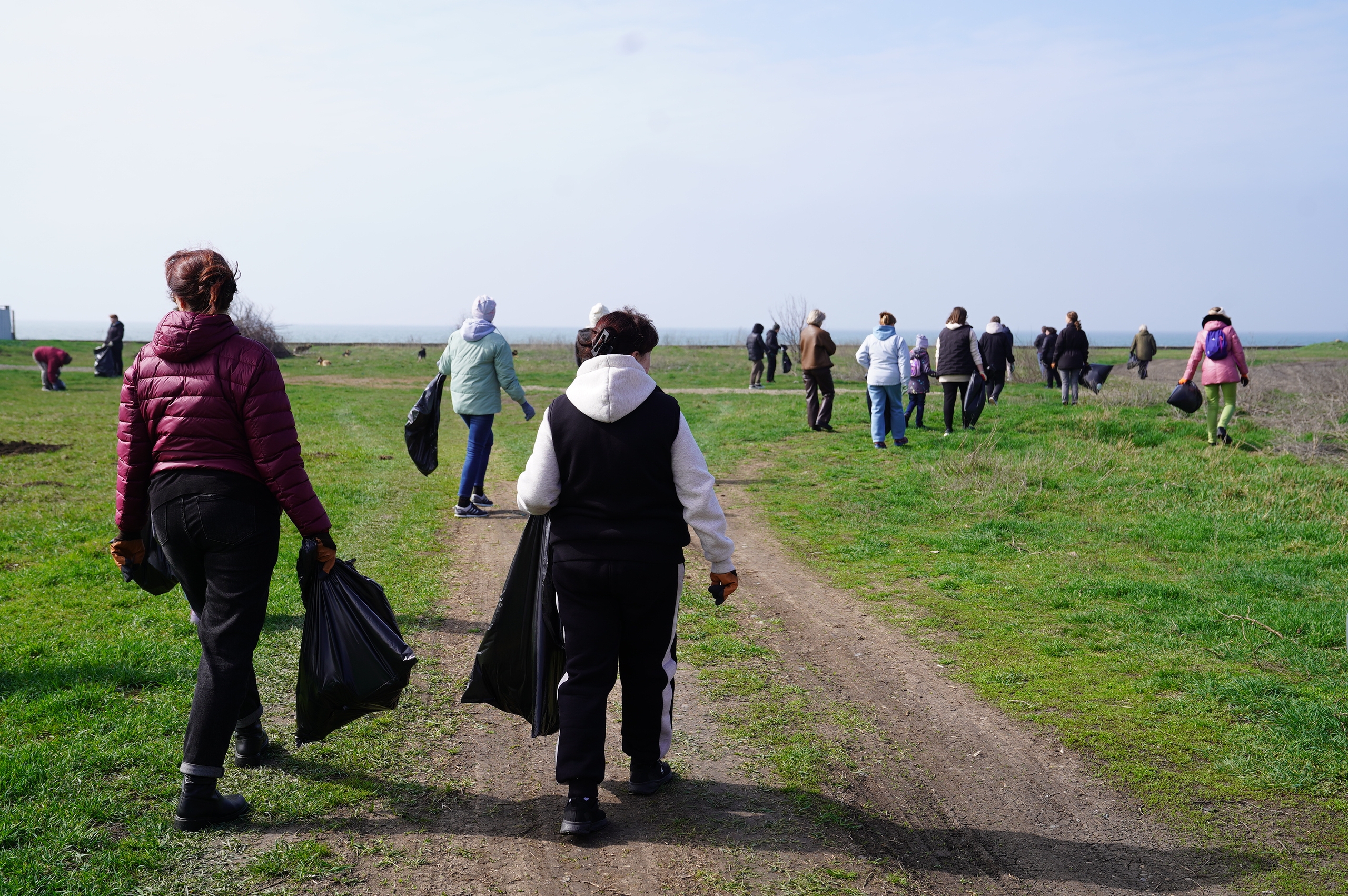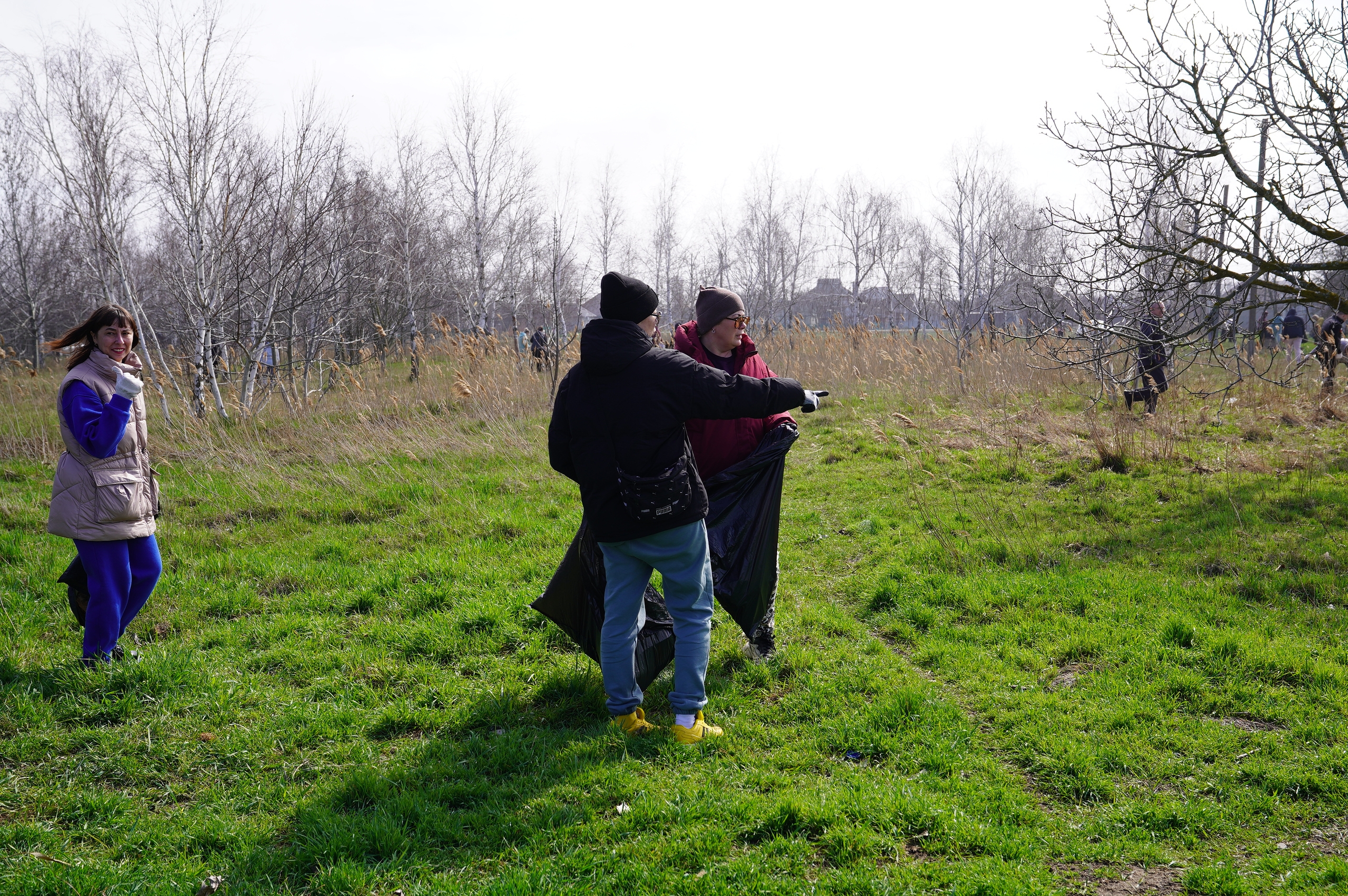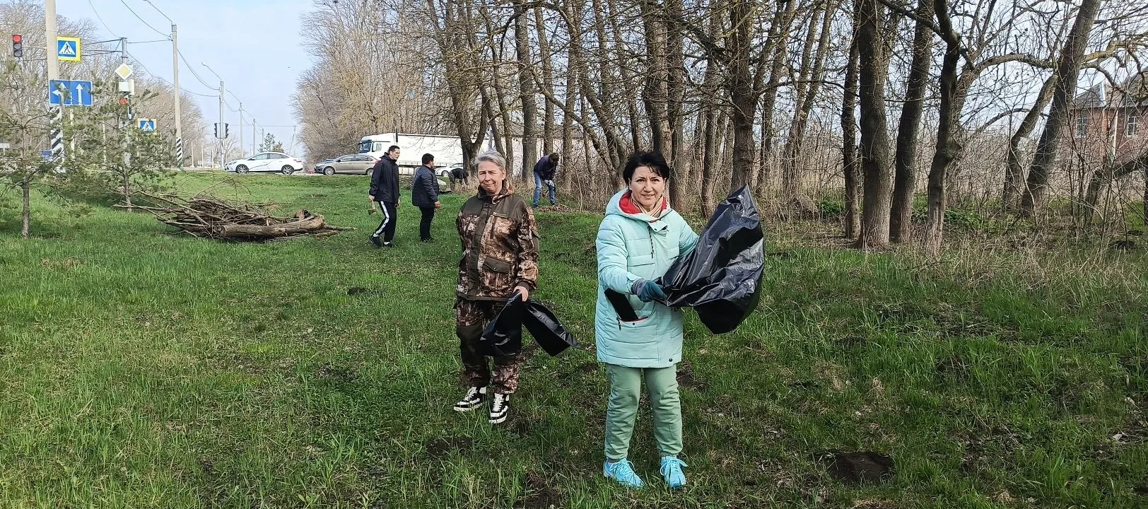 Вооружившись мешками для мусора, они дружно направились к местам, где требовалась их помощь.