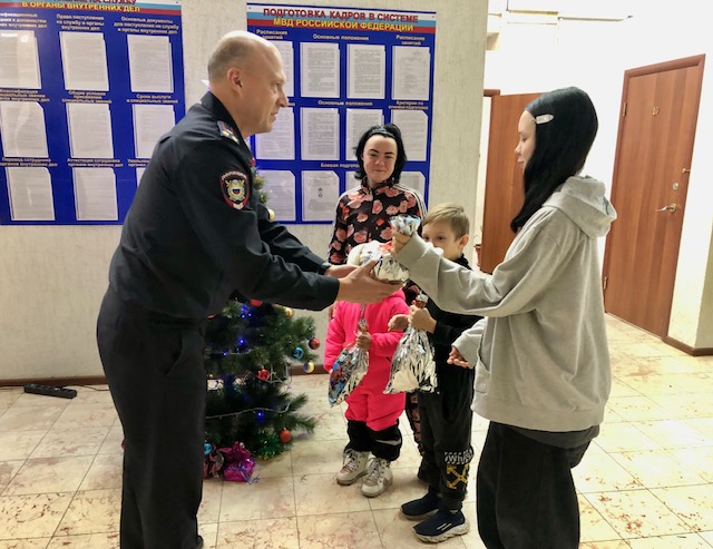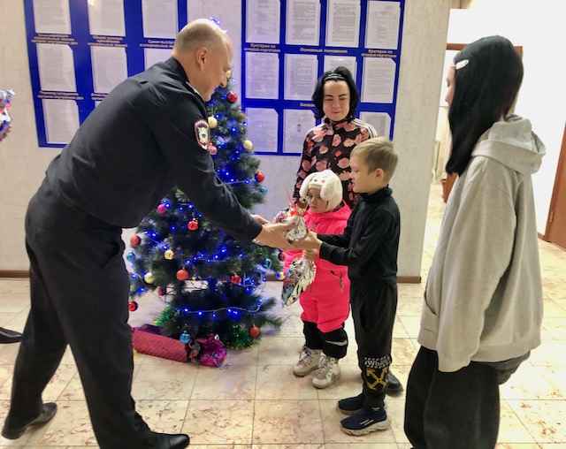 В рамках благотворительной акции «Полицейский Дед Мороз» начальник ОМВД России по Приморско-Ахтарскому району полковник полиции Сергей Викторович Горсков поздравил детей из многодетной семьи, попавших в трудную жизненную ситуацию, с наступающим Новым годом и Рождеством Христовым!
